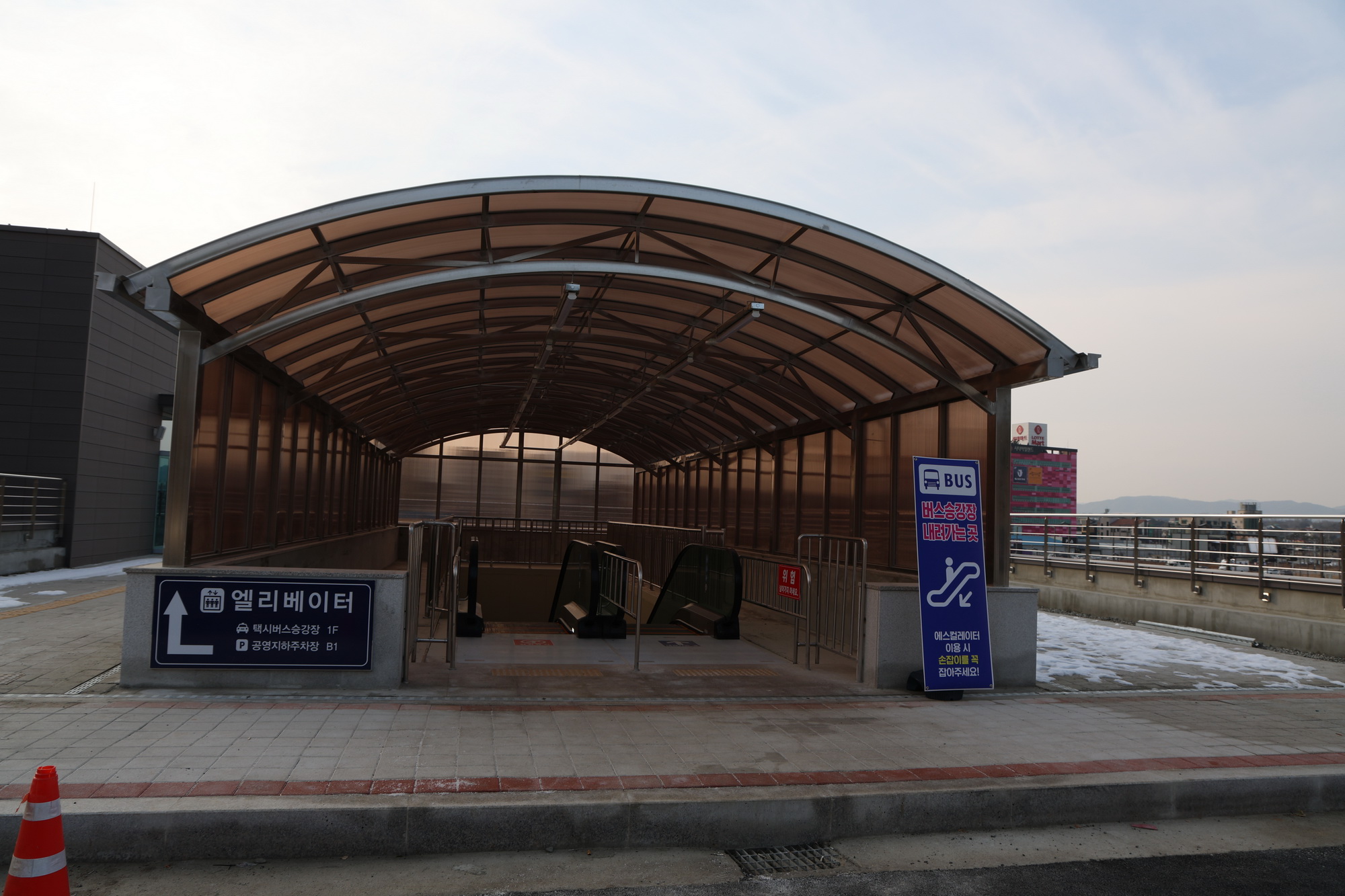스마트정류장에서 차를 세우고 아래에서 엘레베이터나 에스컬레이터를 이용해서 홍성역으로 올라갈 수가 있습니다.