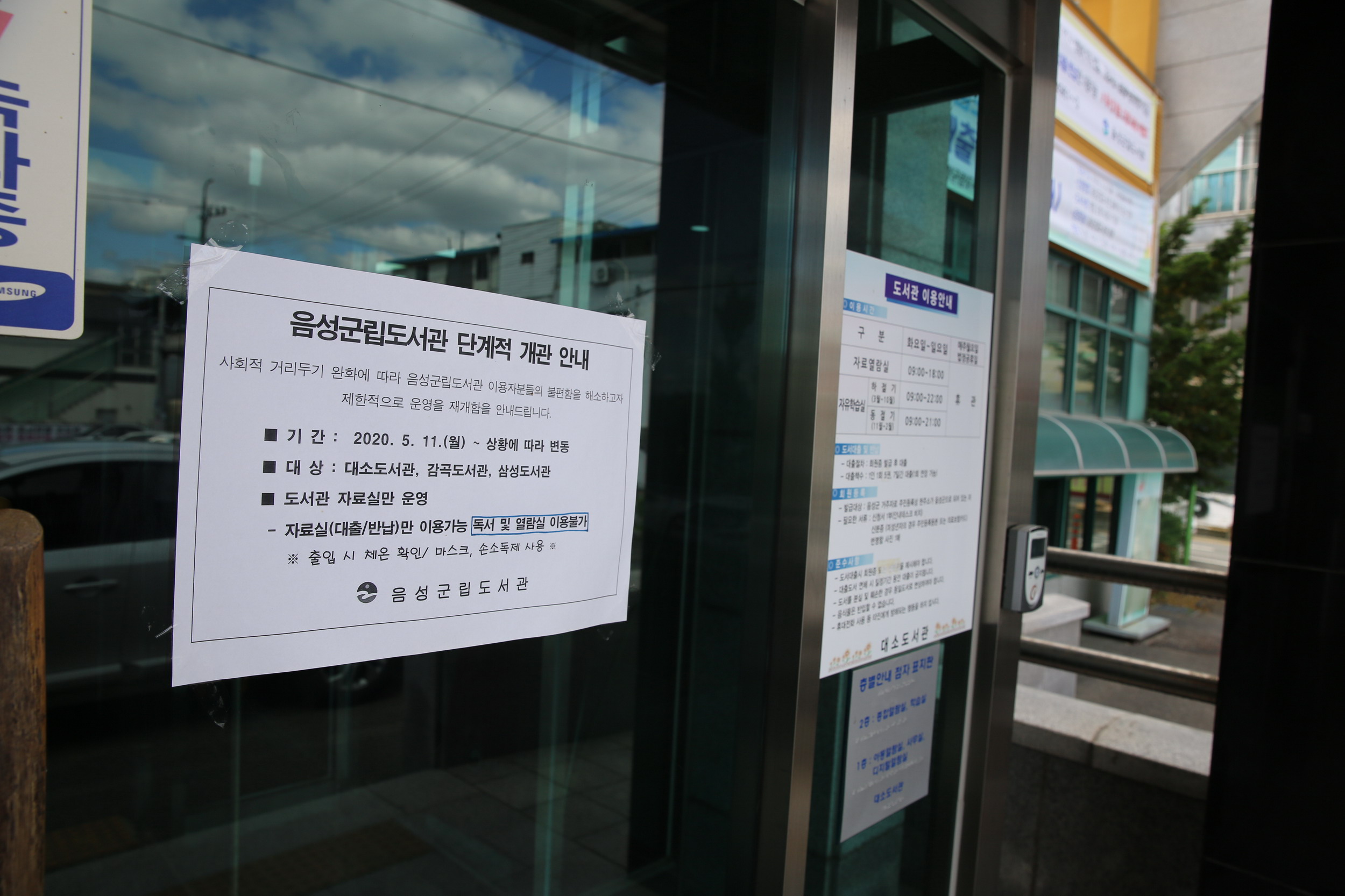 음성에 자리한 군립도서관든 5월 11일부터 단계적으로 개관을 하고 있습니다. 대상 도서관은 대소도서관, 감곡도서관, 삼성도서관입니다. 오래도록은 머무를 수 없습니다.