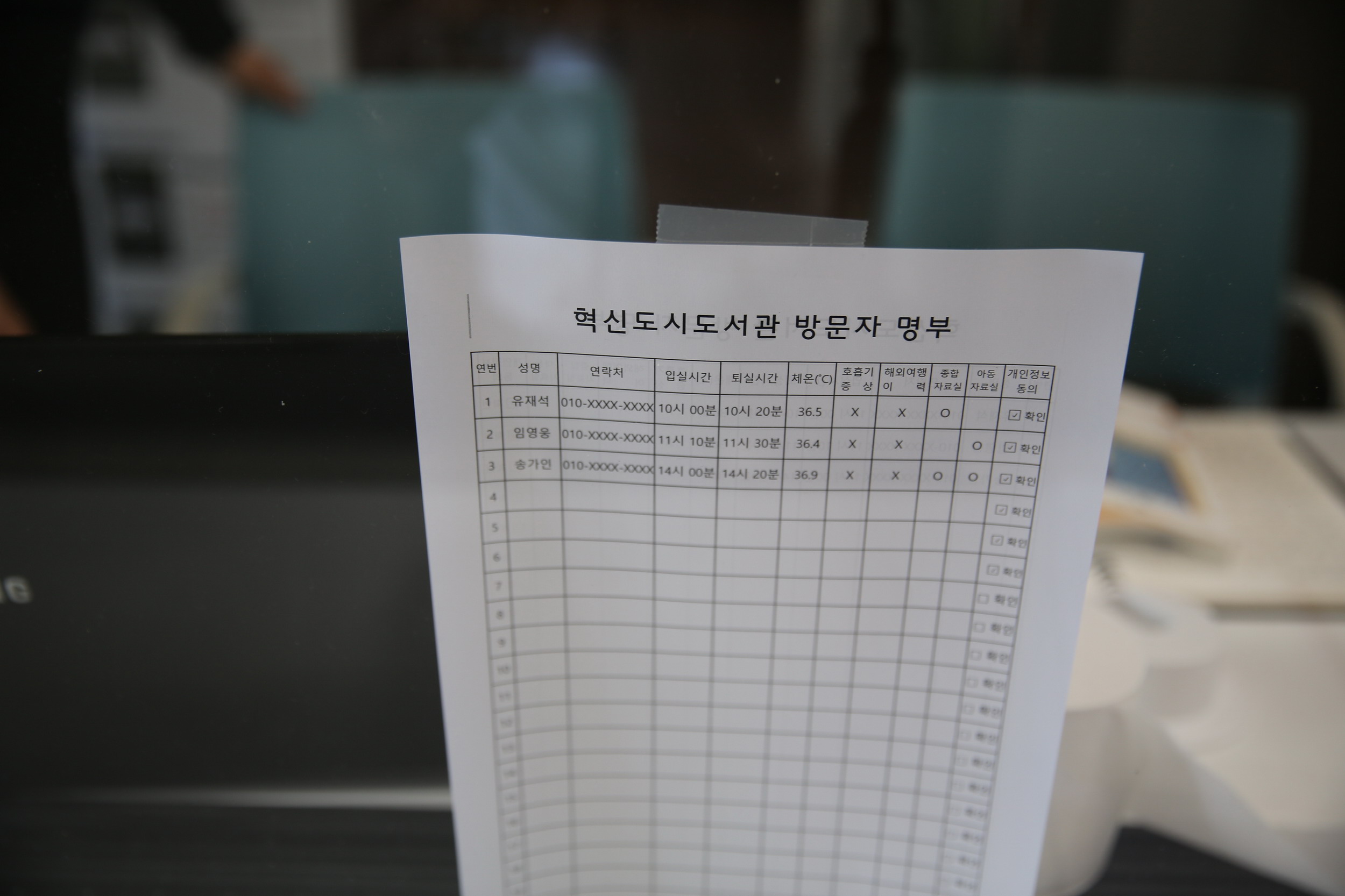 혁신도시도서관에는 이렇게 방문자를 기록하고 들어갈 수 있습니다.