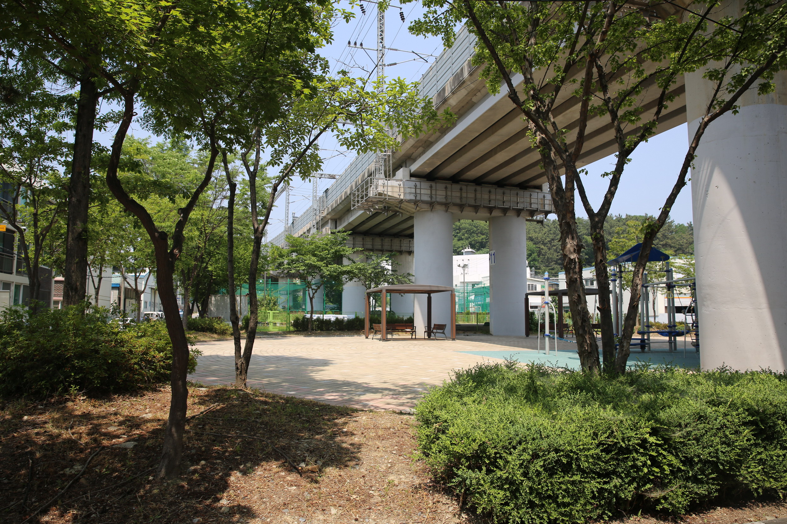 서대전역으로 이어가는 대전의 철도는 호남선으로 그 아래공간은 보통 활용이 잘 안되고 있지만 대덕구는 그 공간에 길게 공원을 조성해두어서 대덕구민을 위한 공간으로 활용하고 있습니다.