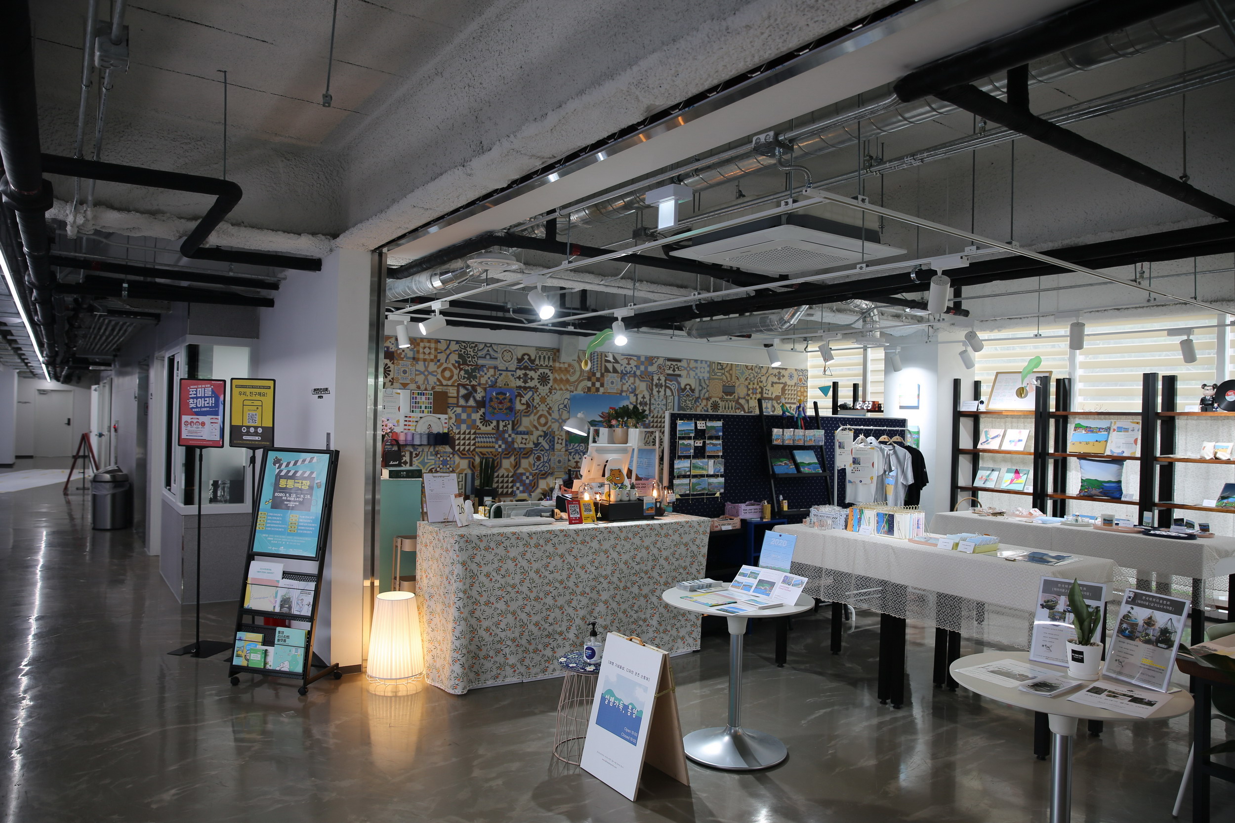 리스타트 플랫폼으로 들어오면 1층에는 친환경적인 느낌의 인테리어로 다양한 작품과 이곳에서 만드는 상품도 구매할 수 있습니다.